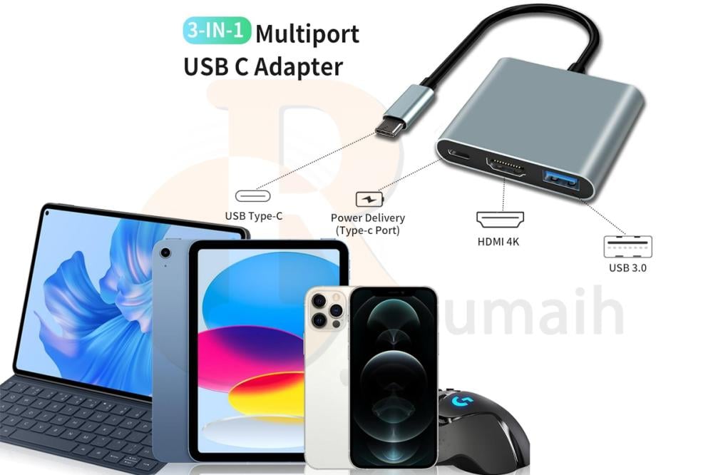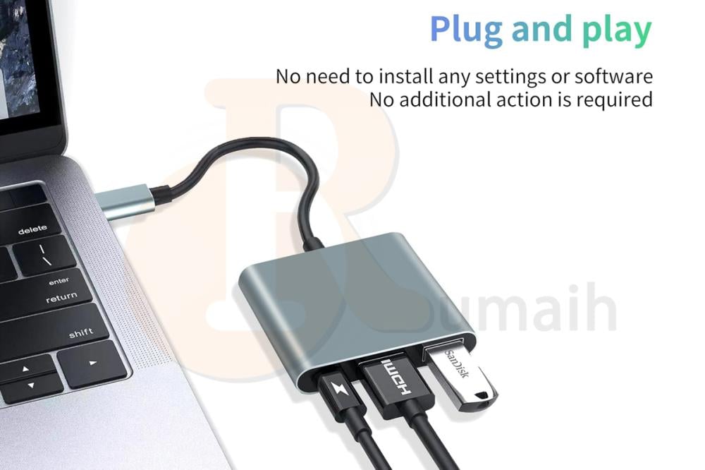 - تايب سي الى 3 منافذ HDMI + PD + USB 3.0 .