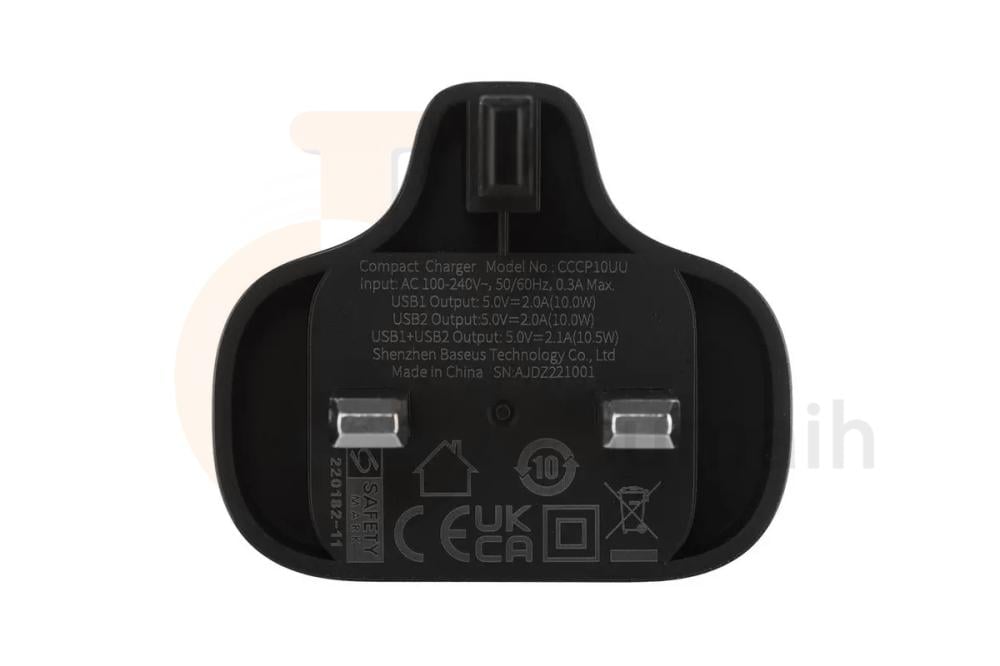 - الشاحن بـ 2 منافذ USB بقوة 10.5 واط .