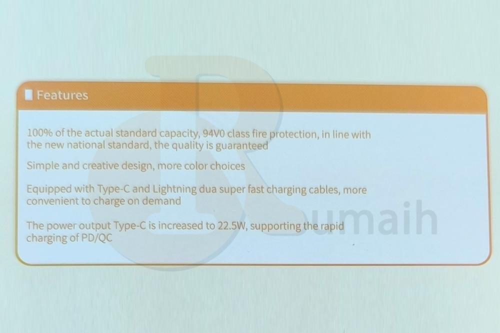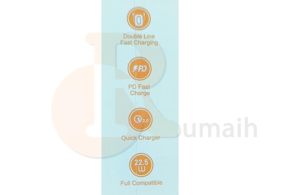 - تتميز بتقنية PD وبقوة 22.5 واط لشحن الآيفون بسرعة فائقة من 0% الى 50% خلال 30 دقيقة .