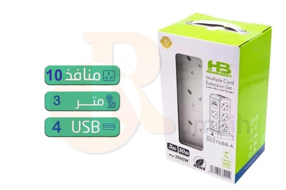 توصيلة كهربائية برج 4USB يو اس بي بـ 10 افياش 3 متر