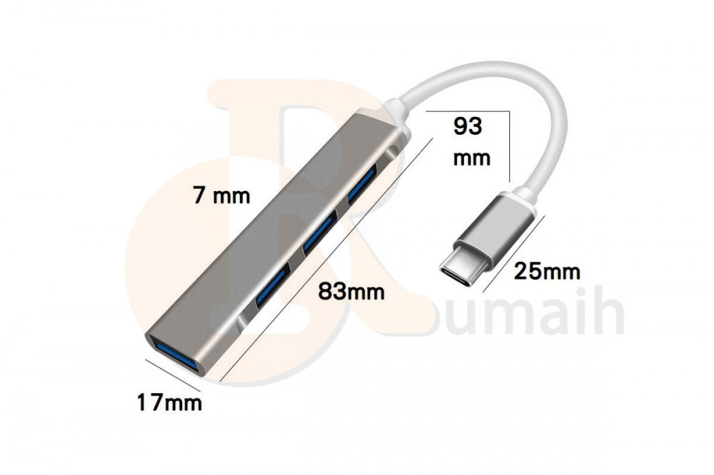 - موزع من تايب سي الى 4 منافذ USB .