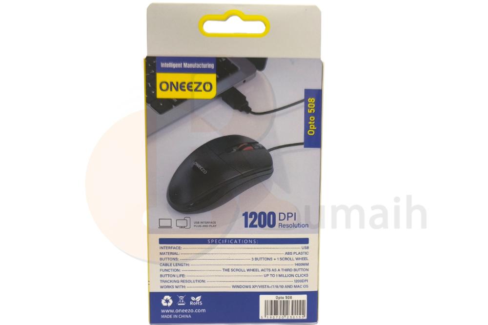 ONEEZO USB OPTICAL Mouse - Opto 508المميزات- ماوس سلكي USB .- 3 مفاتيح .- دقة 1200 dpi .- طول الكيبل : 1.4M .- لون اسود .
