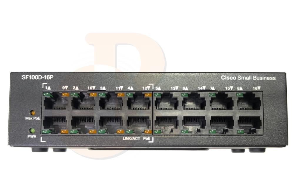 Cisco Small Business 16 Port 10/100 Desktop Switch,SF100D-16P-EUالمميزات- 16 منفذ شبكة LAN .- 8 منفذ تدعم POE .- سرعة نقل البيانات 10/100.